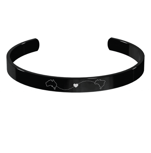 Stay connected across distance with our Heart Between Countries collection: A set of personalized jewelry - one engraved with your country and one with theirs, designed to bridge the distance no matter how far apart you may be.