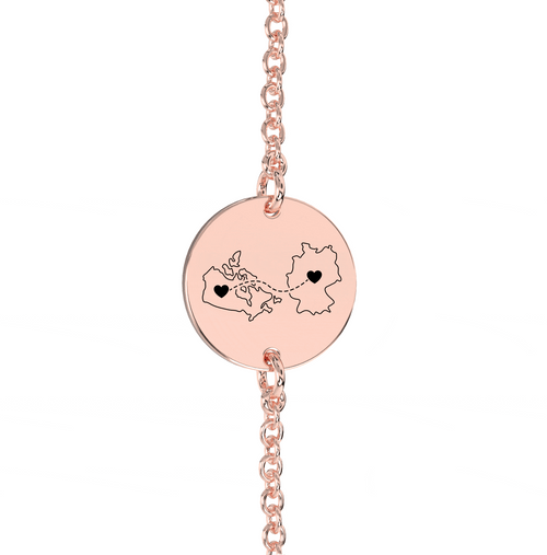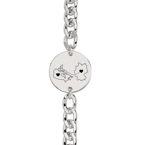 Connect your two worlds with our Dual Maps collection: Personalized memory jewelry featuring the two places that matter most to your heart – whether they're places you call home, locations connecting you with your long-distance partner or friends, or the two countries of your heritage.